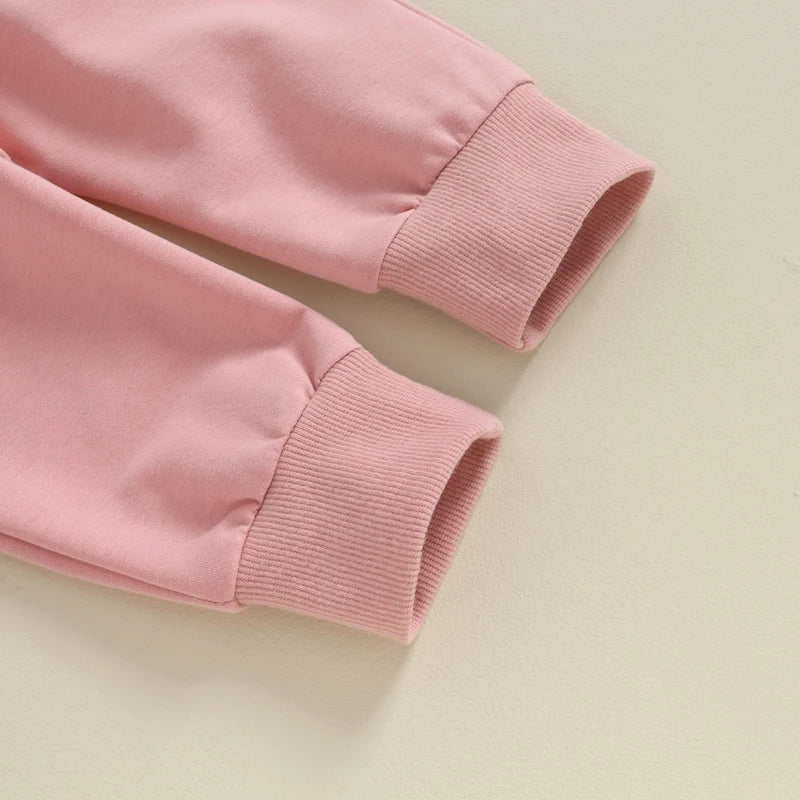 - The letter embroidery adds a playful touch, while the matching sweatshirts and pants create a coordinated look that's effortlessly chic.